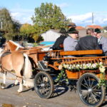So hatten sich Mühen und Risikobereitschaft des Organisations-Teams um Vorsitzende Daniela Heß also doch ausgezahlt. Ein gutes Dutzend an prächtig verzierten und dekorierten Kutschengespannen sowie unzähliges Reitervolk hatte sich zu Ehren des „Heiligen Leonhard von Lomoges“ am gemeindlichen Bauhof versammelt, um an einigen hundert Besuchern vorbei durch das Dorf in Richtung Ortsrand zu ziehen.