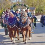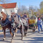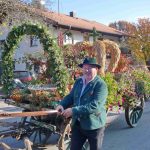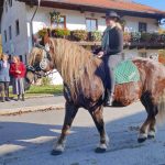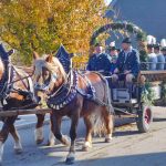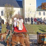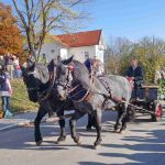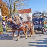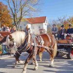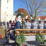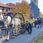 Sebastian Mayer vom Fürstnerhof von Fürst bei Greimharting, seit Kindheit alljährlich beim Leonhardiritt dabei, hat von seinem Vater die Ehre übernommen, für die Bürgermeister-Prominenz von Greimharting und Umgebung beim Umritt einzuspannen. Er zeigte sich begeistert vom heurigen Ereignis und dankbar, dass es trotz der Einschränkungen möglich war und sagte: „Es war wieder mal ein besonderer Tag für Greimharting, gut 50 sauber herausgeputzte Pferde, schöne Wägen mit kirchlichen Motiven und das Festhalten daran, dass wir immer am Namenstag vom Heiligen Leonhard zusammenkommen, war und ist für mich ein persönliches Erlebnis“. Dankbar waren auch die Besucher, die sich mit Abstand suchend am Umzug erfreuten, diesen verschönten die Segnung von Ross und Reitern durch Pfarrvikar Gottfried Grengel sowie ein eigener Festwagen mit den aufspielenden Priener Blasmusikanten. Die Rosserer aus Greimharting und den Nachbargemeinden präsentierten auch schöne Motivwägen, unter anderem Kirchennachbildungen und Heilige. Veranstalter des Greimhartinger Leonhardiritts ist im übrigen kein Verein, in der Organisation ist die Gemeinde Rimsting behilflich, letztlich kommt Jeder – so der Fürstner-Wast – der was auf den Heiligen Leonhard hält, mit oder ohne Pferd am 6. November nach Greimharting.