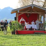 Heute bekennt man sich oft wieder zu dieser Arbeitsform und auch zum sportlichen Umgang mit dem Pferd. Der Gottesdienst, in einer wunderbaren Naturlandschaft unterhalb des Heuberg, wurde musikalisch begleitet von vier Weisenblässern, die zum Abschluß der Messfeier die Hymne,” Großer Gott wir loben dich” und die Bayernhymne erklingen liesen.