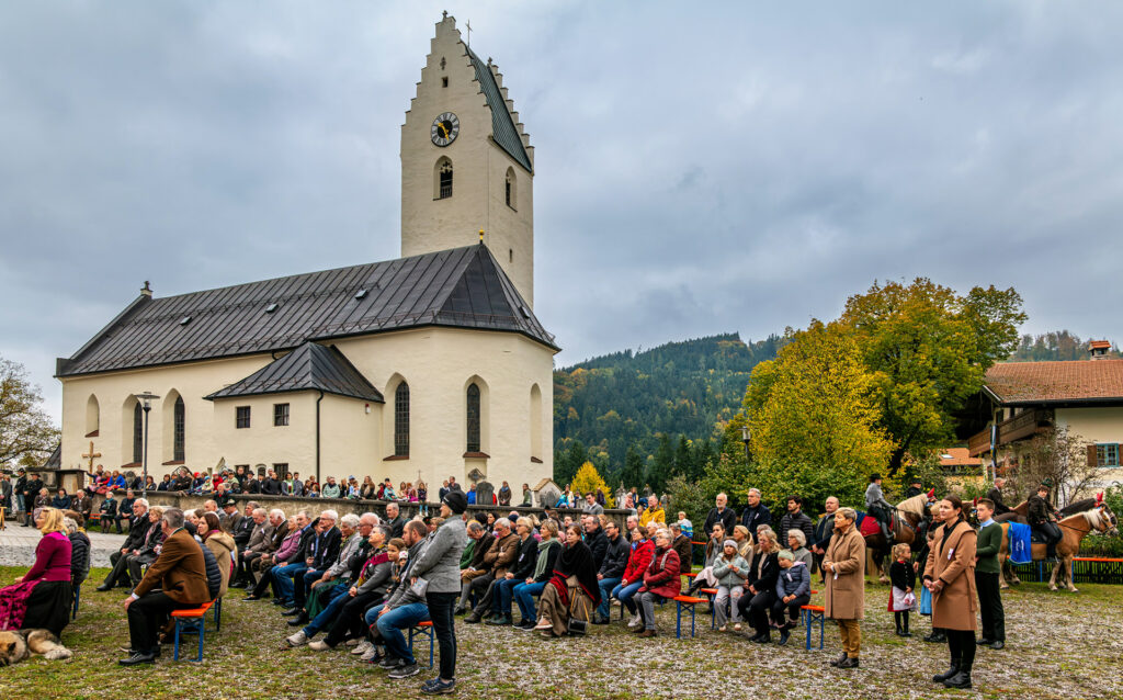 Das eindrucksvolle Bild des Umritts rund um die Kirche von Roßholzen verband in diesem Jahr erneut Glauben, Brauchtum und Gemeinschaft auf besondere Weise. Kinder auf Ponys ritten neben erfahrenen Gespannführern, prachtvoll geschmückte Pferde trugen festliche Geschirre und Schleifen, und die Kutschen waren liebevoll mit Herbstblumen geschmückt.