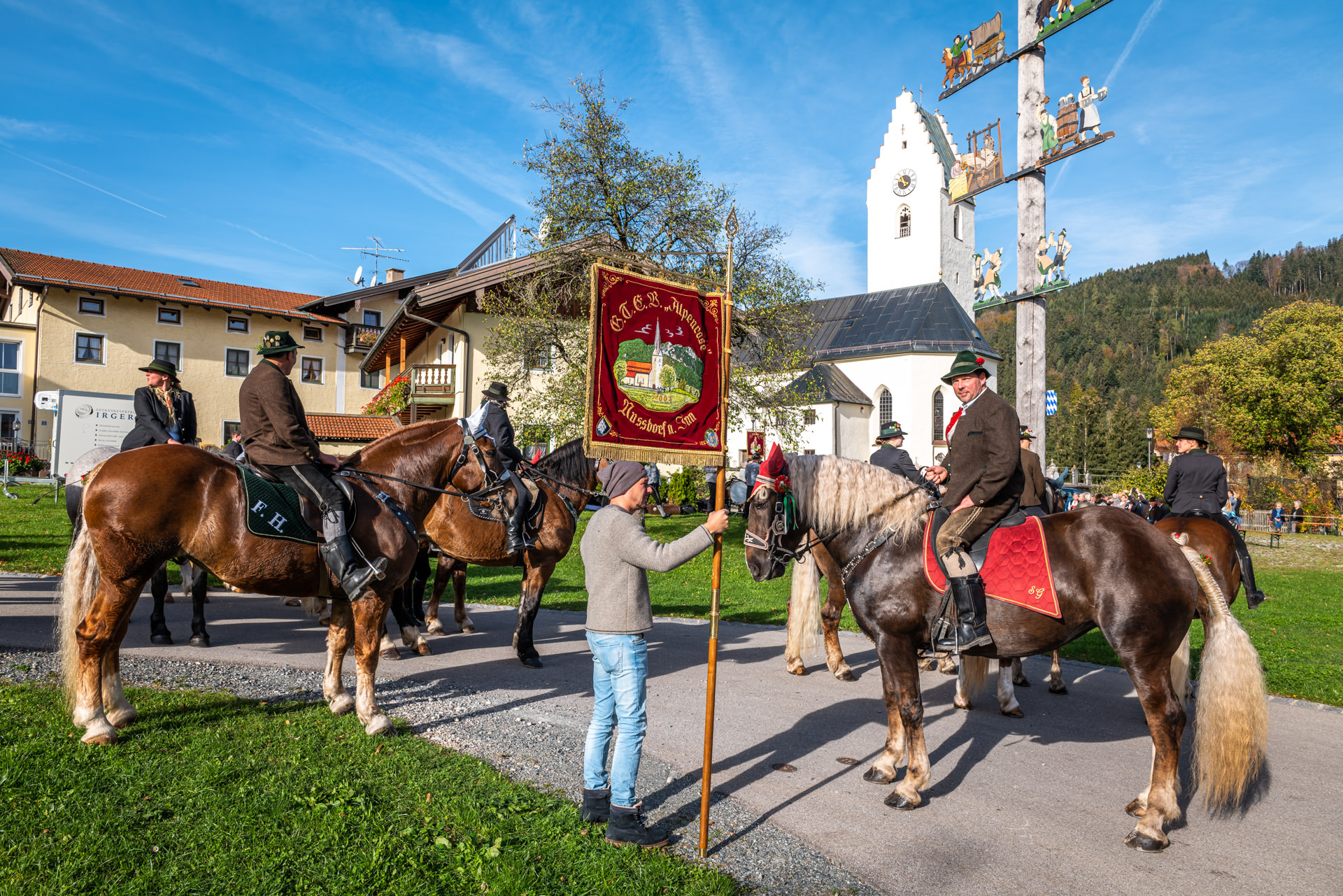 Farbenprächtiger Leonhardiritt in Roßholzen/Samerberg