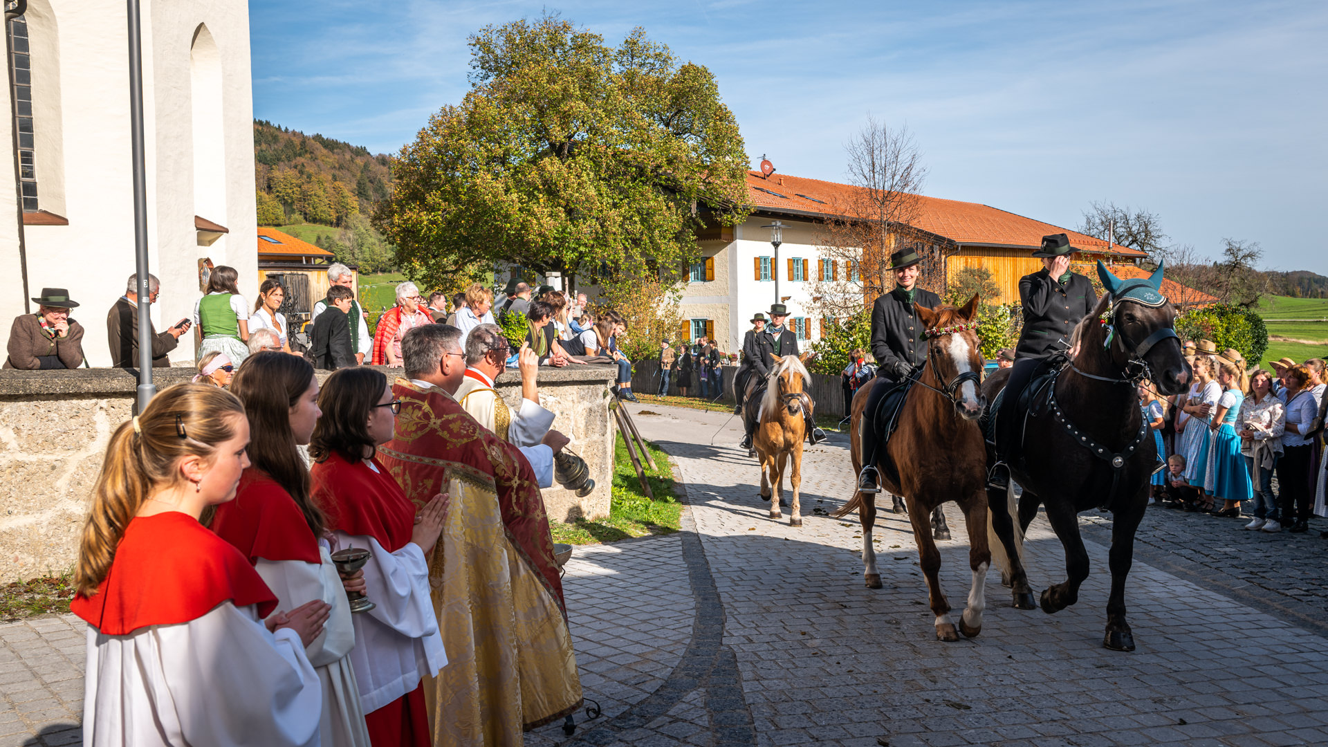 Farbenprächtiger Leonhardiritt in Roßholzen/Samerberg