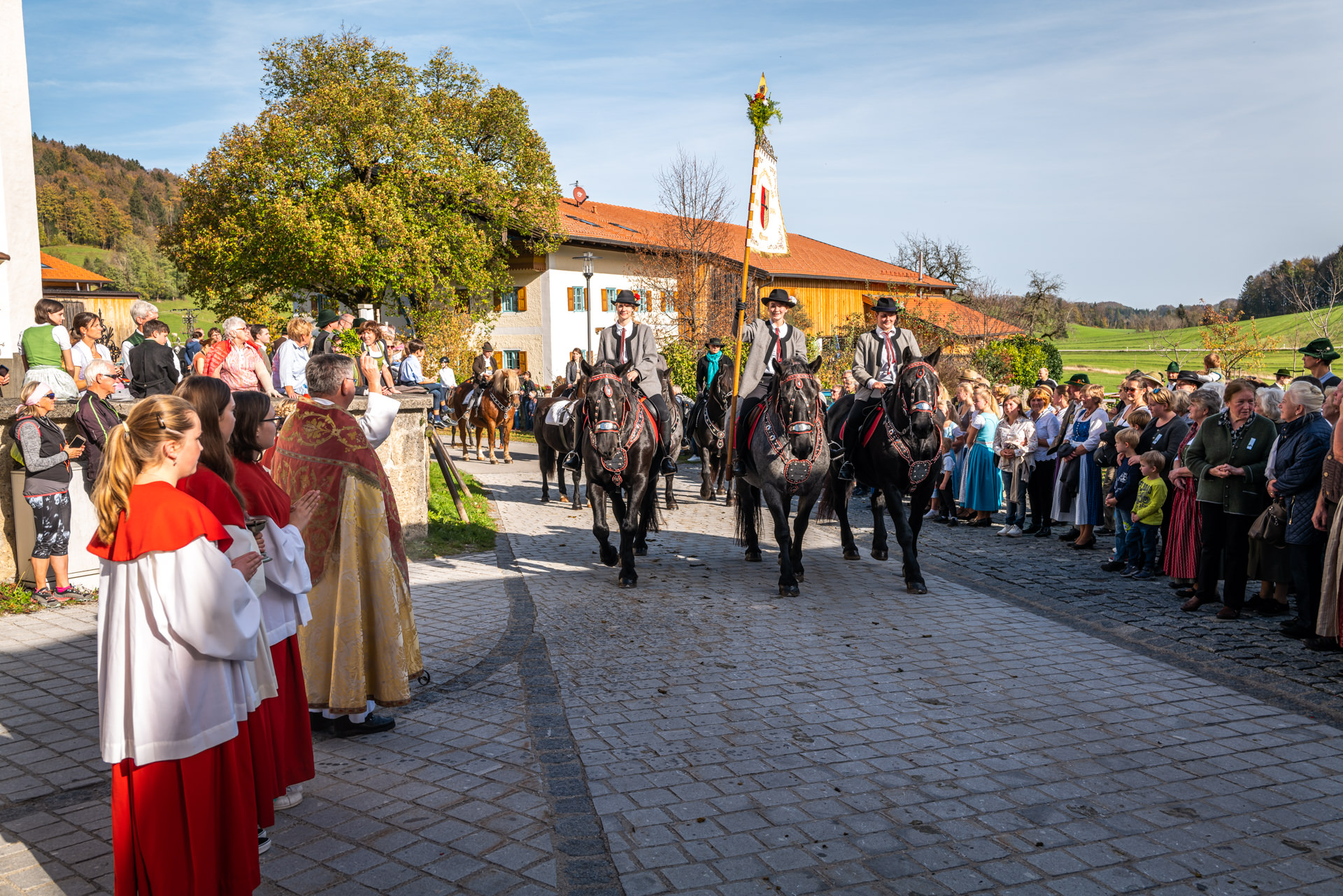Farbenprächtiger Leonhardiritt in Roßholzen/Samerberg