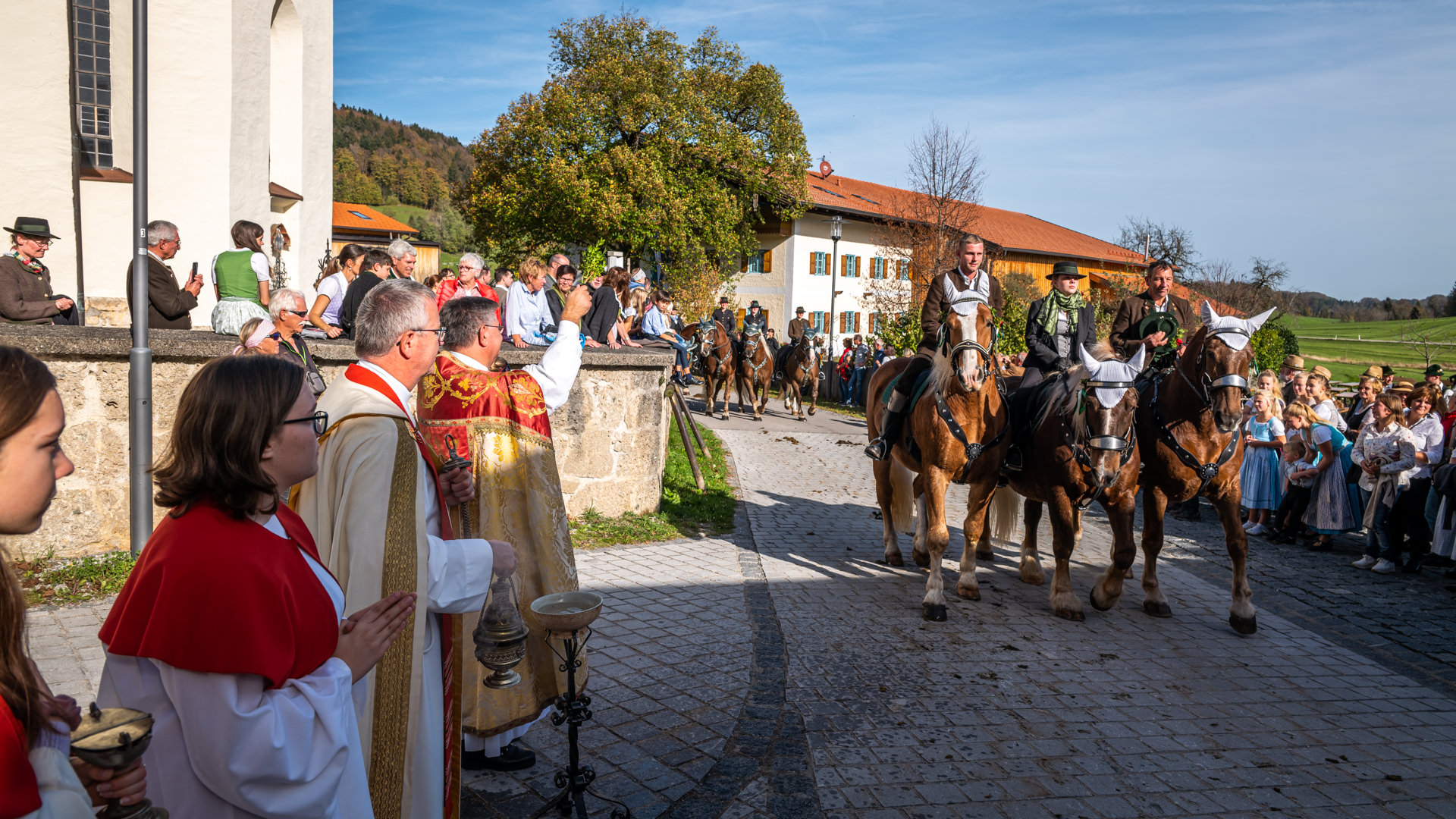 Farbenprächtiger Leonhardiritt in Roßholzen/Samerberg
