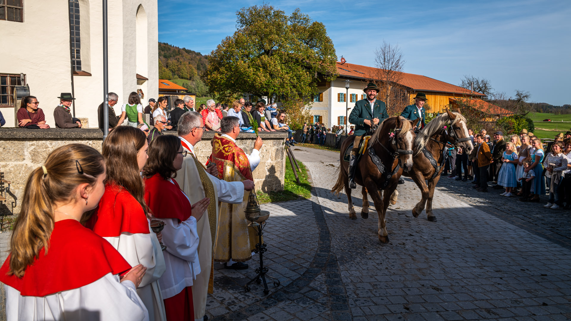 Farbenprächtiger Leonhardiritt in Roßholzen/Samerberg