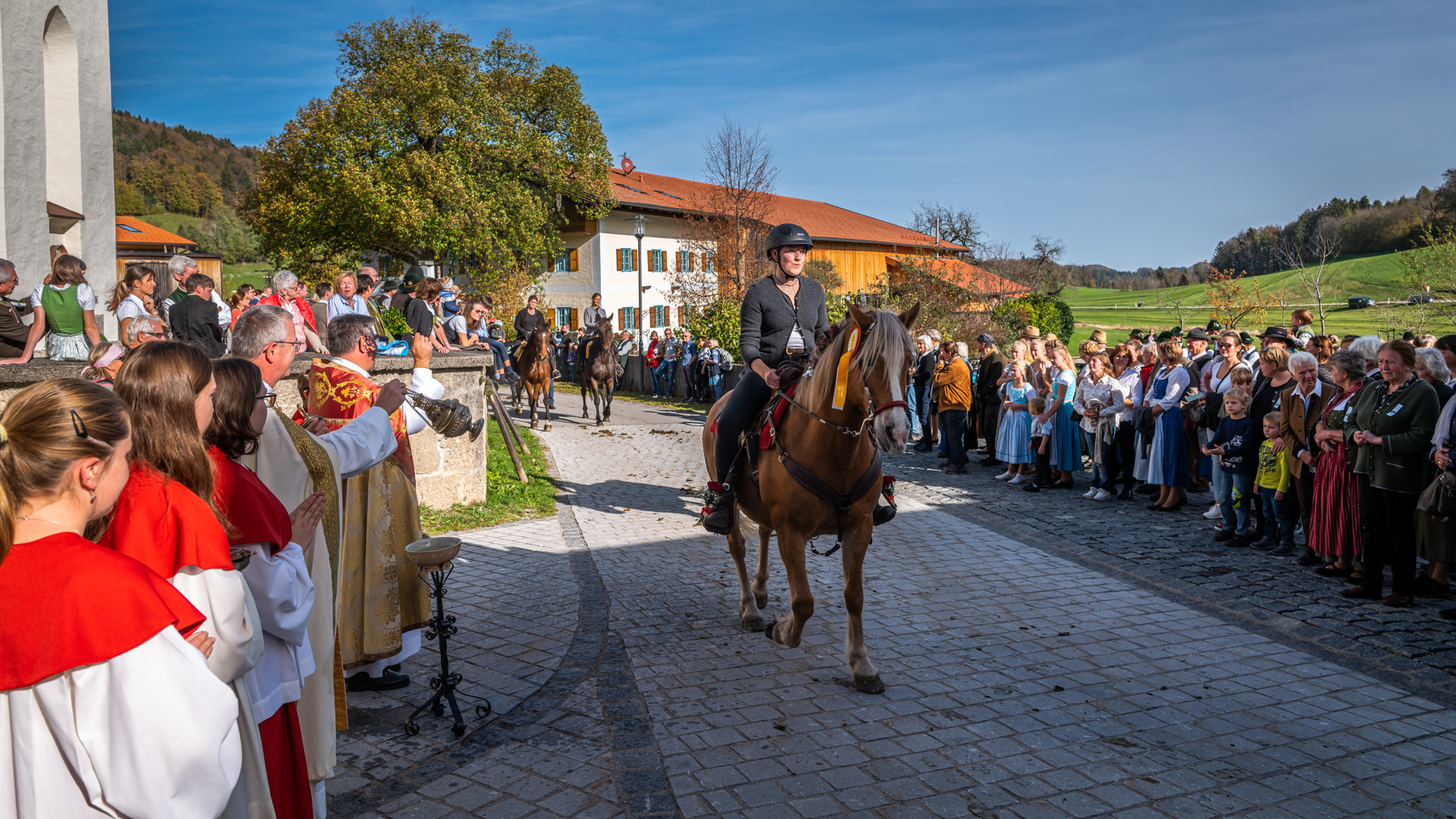 Farbenprächtiger Leonhardiritt in Roßholzen/Samerberg