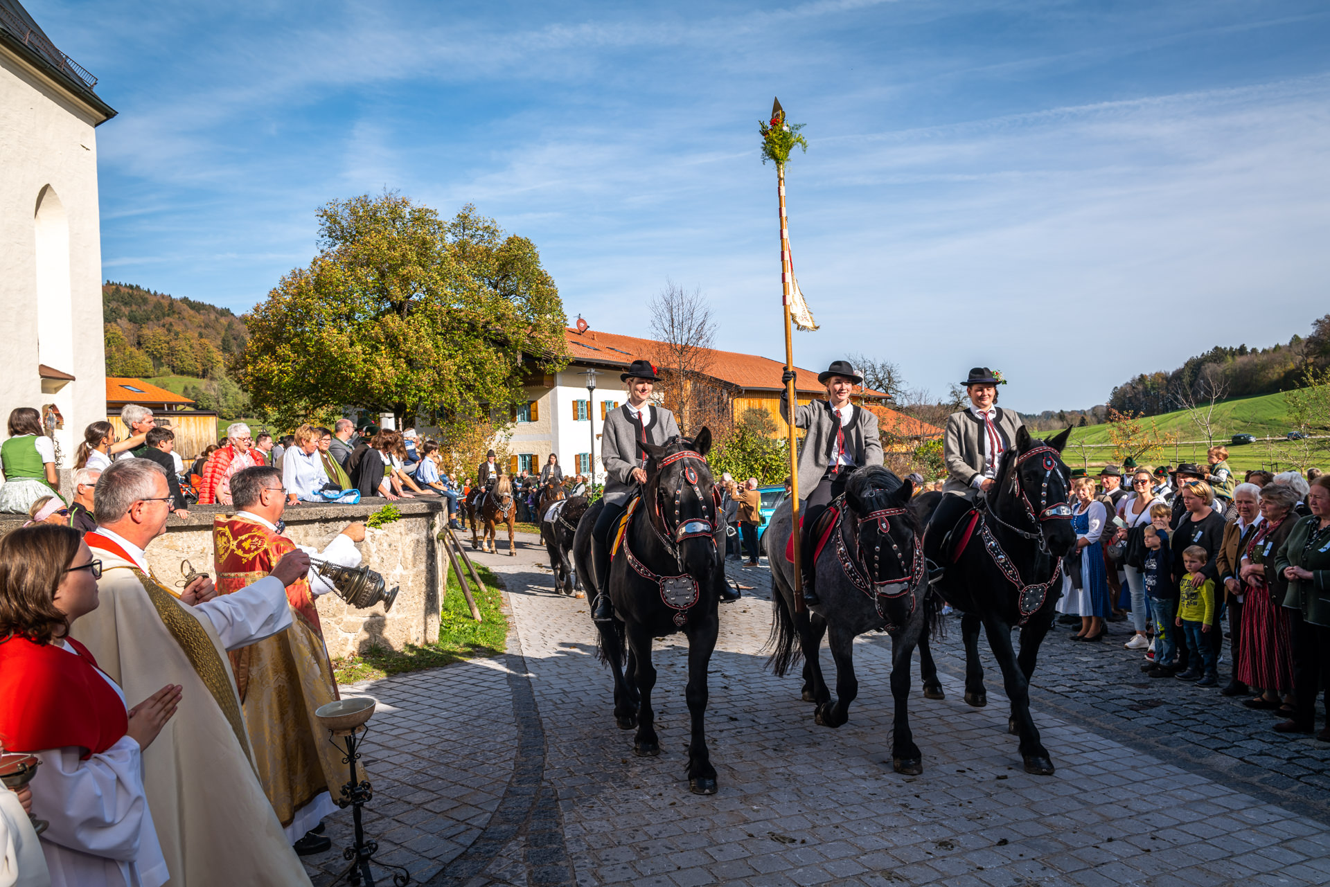 Farbenprächtiger Leonhardiritt in Roßholzen/Samerberg
