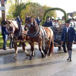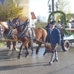 “Stellen wir uns dem Wandel in der Gesellschaft, nehmen wir Aufgaben an und Vertrauen wir auf die Stärke des inneren Ankers, der aus Gott und Glauben besteht” – mit diesen Worten richtete sich Pfarrer Klaus Hofstetter beim Gottesdienst an die Gläubigen, die sich anlässlich des Leonhardirittes in der Kirche St. Petrus und St. Leonhard in Greimharting, Gemeinde Rimsting versammelten. Traditionell sind bei dieser Feier mit Kerzenweihe auch die Bürgermeister der Gemeinden Bernau, Frasdorf, Prien und Rimsting zugegen.  Zum von Pfarrer Hofstetter angesprochenen Wandel in der Gesellschaft gehört auch, dass im kommenden Frühjahr im Rahmen der Kommunalwahlen die Bürgermeisterin Marianne Steindlmüller aus Frasdorf, Josef Mayer aus Rimsting und Jürgen Seifert aus Prien ihr Amt abgeben, lediglich Philipp Bernhofer aus Bernau wird sich wieder zur Wahl stellen. Nach dem Gottesdienst erfolgte der dreimalige Umritt mit rund 60 Pferden, mit schönen Motivwägen und mit der Blaskapelle Prien. Die Trachtenfrauen und die Kindergartenkinder durften auf einem eigenen Wagen mitfahren. Würstl und Getränke von Metzger Richard Grosse sowie im und vor dem Gemeindehaus rundeten den Festtag zum Heiligen Leonhard in Greimharting ab.