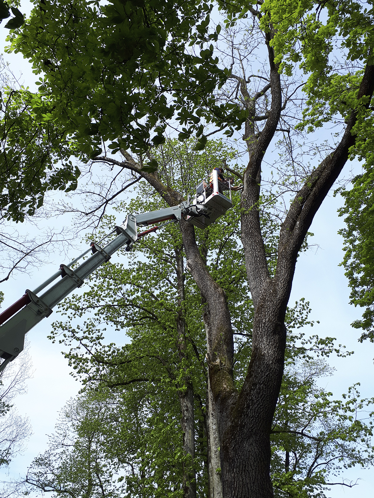 Hoch oben im Baum findet das Kronenmonitoring statt. (Foto: LfL)