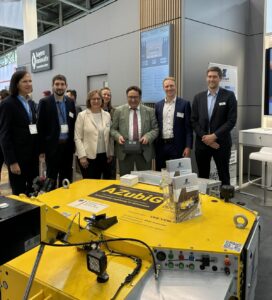Wirtschaftssekretär Tobias Gotthardt besuchte auf seinem Messerundgang auf der transport logistic 2025 den Gemeinschaftsstand von BAYERN INNOVATIV und sprach mit LKZ-Geschäftsführerin Dr. Petra Seebauer und Frank Zwiehoff, Geschäftsführer beim Zweiwege-Fahrzeughersteller Zwiehoff, über fördertechnische Unterstützungsmöglichkeiten des Freistaats bei innovativen Lösungen Made in Bavaria. V.l.n.r.: Harry Seybert (Bayerisches Staatsministerium für Wohnen, Bau und Verkehr), Andreas Krapf, Dr. Petra Seebauer und Stephanie Grüneis (alle LKZ Prien GmbH), Wirtschaftssekretär Tobias Gotthardt (Mitglied des Bayerischen Landtags), Florian Fürle (LKZ Prien) und Frank Zwiehoff (G. Zwiehoff GmbH). Bildnachweis: LKZ Prien GmbH