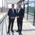 Der Bayerische Innenstaatssekretär Sandro Kirchner (links) informierte sich bei Landrat Otto Lederer (rechts) über eine erste Zwischenbilanz zum Chatbot MILA. Weitere Gesprächsthemen waren Herausforderungen und Fortschritte der Digitalisierung in der Behörde.