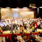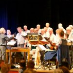 Der Männerchor selbst präsentierte eine breite Palette seiner Lieder, darunter den beliebten Udo-Jürgens-Schlager “Ein Platz an der Sonne”, das besinnliche Lied „Trag mi“ sowie den Klassiker “La Montanara”, bei dem auch der Schweizer Chor harmonisch einstieg. Die Vielseitigkeit des Männerchors zeigte sich besonders, als er in kleiner Besetzung den energiegeladenen Jägerchor aus der Oper Freischütz intonierte.  Nach den Dankesworten des Vorsitzenden Franz Scheck an die Sponsoren und alle Beteiligten schloss der Männerchor das offizielle Programm mit dem eingängigen Beckenbauer-Schlager “Gute Freunde kann niemand trennen”, bei dem das Publikum kräftig einstimmte und damit die gemeinsame festliche Atmosphäre verdeutlichte. Quasi als Zugabe sangen schließlich alle Chöre gemeinsam das bayerische Volkslied “Fein sein beinander bleib’n”, das den festlichen Abend auf eine berührende Weise abrundete.
