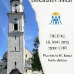 In diesem Jahr wird die Pfarrei Kiefersfelden Gastgeber für die Dekanatsmaiandacht sein. Die Maiandacht findet am 16. Mai um 19:00 Uhr in der Pfarrkirche Hl. Kreuz statt. Prodekan Fabian Orsetti wird die Maiandacht leiten, musikalisch gestaltet wird sie vom Dekanatsmusikpfleger Wast Unterseher und dem Dekanatschor Inntal. Dabei werden alpenländische Marienlieder und Stücke von Hans Berger gesungen. Interessierte Sänger sind im Chor jederzeit willkommen und können ohne Voranmeldung zur Chorprobe kommen. Diese findet am Montag, den 05. Mai um 20:00 Uhr ebenfalls in der Pfarrkirche Kiefersfelden statt.