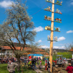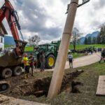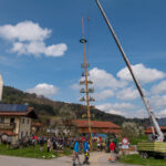 Seit Jahrzehnten wird in Roßholzen vom dortigen Trachtenverein „Almenrausch“ der Maibaum ganz traditionell mit Händen und Stangen gestemmt. – In diesem Jahr war dies aufgrund der sehr starken Regenfälle der vergangenen Wochen nicht möglich. Das Erdreich war zu nass und rutschte nach. Das machte ein Aufstellen mit Manneskraft unmöglich. Stattdessen musste man das Erdreich mit Kies stabilisieren und konnte den Baum nur mit einem Kran sicher und stabil aufrichten. Trotz der schwierigen Bodenverhältnisse stand der Maibaum in Rossholzen am Ende prachtvoll da. Er ist 34,7 m lang und wurde 3,5 m in die Erde eingelassen. Es war ein großartiges Fest für die Dorfgemeinschaft mit gutem Essen und musikalischer Begleitung durch Mitglieder der Musikkapelle Samerberg. Gestiftet wurde der prächtige Baum heuer von Maria und Florian Griebl aus Achtental am Samerberg.