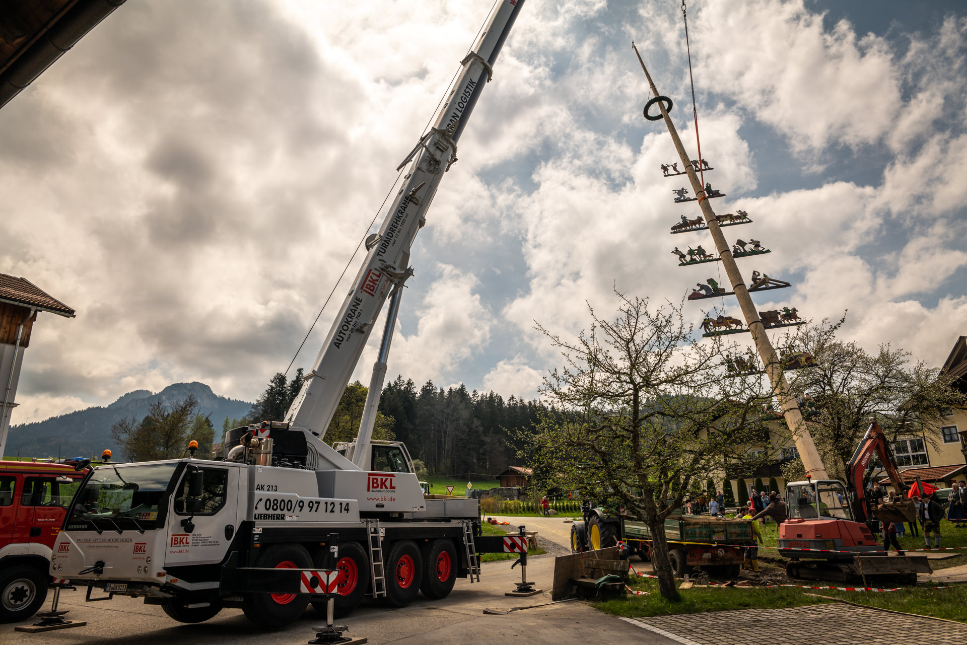 Maibaum-Aufstellen in Roßholzen war ein Kampf gegen das Wasser