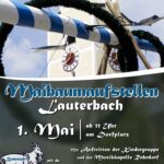 Am 1. Mai ab 11 Uhr ist es jetzt wieder soweit, dass der Baum von den Trachtlern zusammen mit den Maibaumdieben, im Rahmen eines Festes, traditionell mit Muskelkraft aufgestellt wird. Sollte das Wetter nicht mitspielen wird das Maibaumfest auf den 04. Mai verlegt. Musikalisch unterstützen die Rohrdorfer Musikkapelle und die Brandseck Muse. Die Kinder- und Jugendgruppe der D‘ Lindntaler werden auftreten. Die Vorbereitungen für das Fest laufen bereits und die Lauterbacher Trachtler freuen sich, wenn sie viele Besucher bewirten können und mit ihnen zusammen feiern, wenn der neue Maibaum den Dorfplatz wieder ziert.  Der Eintritt ist frei.