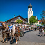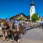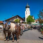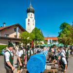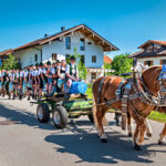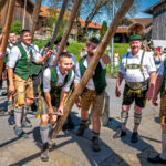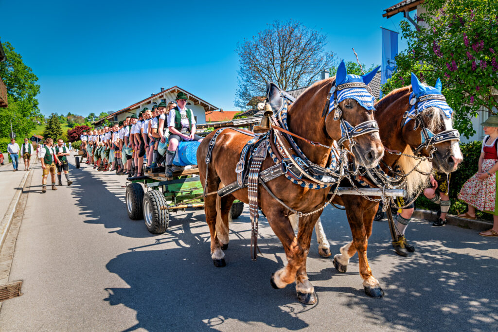 Bereits am Vormittag rollte der 30 Meter lange Maibaum, festlich geschmückt, durch die Straßen – gezogen von einem prächtigen Pferdegespann unter der Führung von Florian Wörndl. Auf dem Maibaum sitzend: die jungen Dirndl und Buben des Trachtenvereins Almarausch Hittenkirchen, in Tracht, mit Stolz und Freude im Gesicht. Der Baum selbst war eine Spende der Familie Weinberger aus Schaurain – ein Geschenk an die Dorfgemeinschaft, das von Anfang an sinnbildlich für den Zusammenhalt stand.
