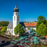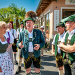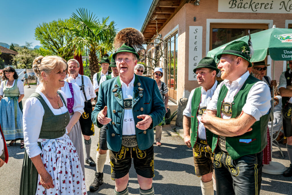 Am Dorfplatz herrschte unter den grünen Sonnenschirmen rund um die Kirche bereits ausgelassene Stimmung. Die Rohrdorfer Blaskapelle sorgte für die musikalische Umrahmung, während Familien, Jungtrachtler, Gäste und Einheimische das bunte Treiben genossen. Der Platz war gefüllt mit Leben – und mit Vorfreude auf das große Schauspiel.