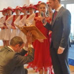 Eine Kostprobe davon bekamen die Gäste bei der Proklamation. Jeder Schritt saß und alle 15 Gardemädchen schlossen die Aufführung mit perfektem Spagat ab. Dafür gab es begeisterten Applaus. Bis auf eine kleine Unsicherheit lief dann auch beim Walzer des neuen Prinzenpaares alles perfekt. Die Freude über ihre frisch verliehene königliche Würde war den beiden deutlich anzusehen. Philip Kesmarki trägt den Titel „Prinz Philip I, Meister der klingenden Violine, aus dem Reich der Symphonien.“ Der gebürtige Rosenheimer studiert am Mozarteum in Salzburg und ist ein äußerst talentierter Geigenspieler. Wie man an seinem Namen erkennen kann, kommt er aus der Tanzschule Kesmarki und hat die Liebe zu Tanz und Musk quasi in die Wiege gelegt bekommen. Zu seinen Hobbys gehören Bogenschießen, Skifahren, Tanzen und Musik.
