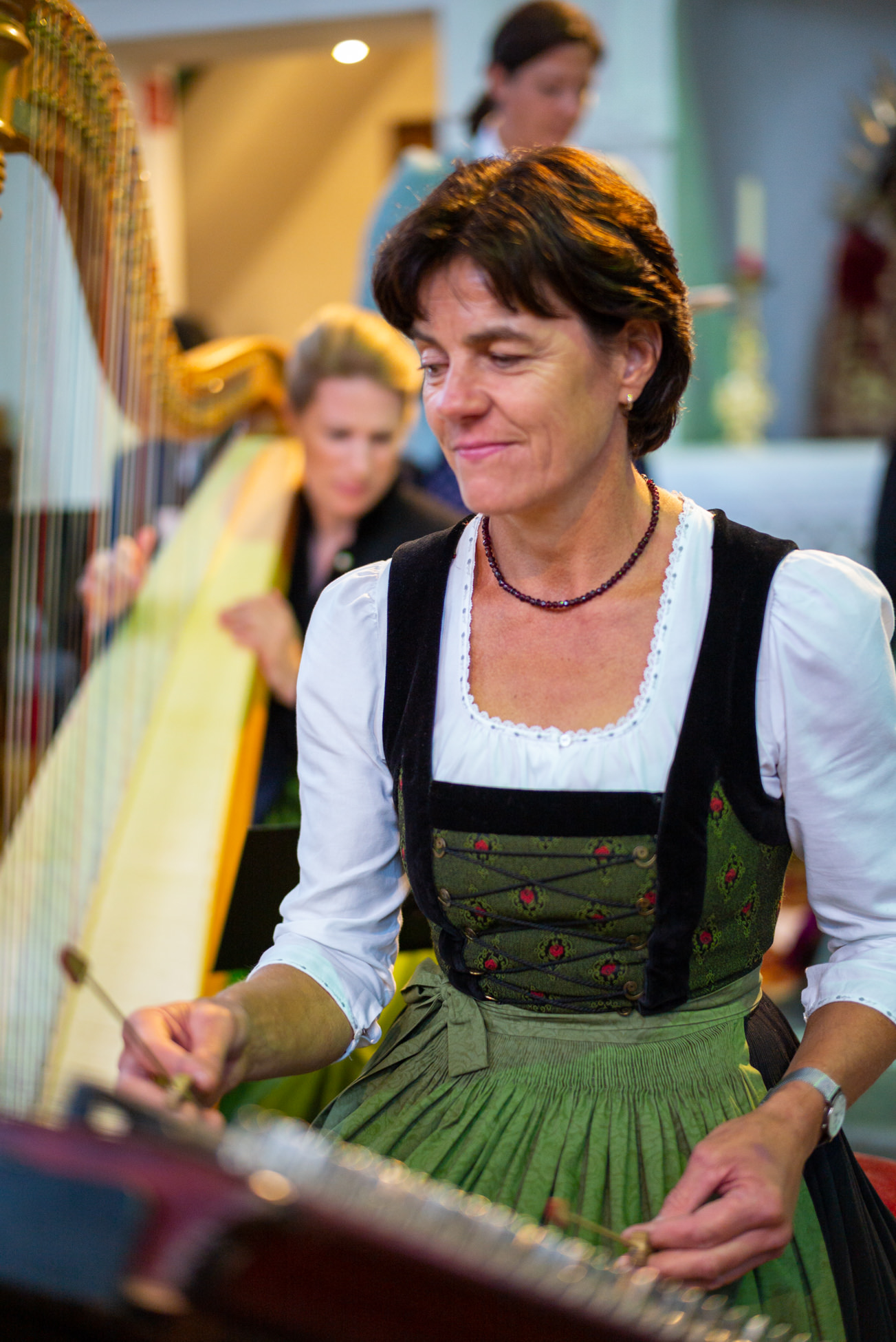 Birgit Sporer (Hackbrett) beim Alpenländischen Marien-Oratorium in Brixen