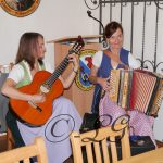 Kniend: Steffi Wimmer und Frieda Viehhauser, Musikantinnen aus Bergern