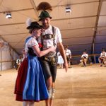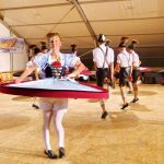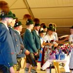 „Gaudirndldrahn und Gaugruppe – was ist das genau?“ – diese Frage stellten sich insbesondere die Urlauber, die sich beim traditionellen Wettbewerb des Chiemgau-Alpenverbandes im Festzelt vom Trachtenverein „D´Staffelstoana“ eingefunden hatten. Antworten bekamen die Fragenden leicht, da es einmal sehr viele fachkundige Trachtlerinnen und Trachtler gab, die gerne Auskunft gaben und weil es gut sichtbar zu verstehen war. Die Dirndl, die zweimal mit ihren Buam einen Walzer tanzen und sich dann zweimal in hoher Geschwindigkeit um den in der Bühnenmitte plattelnden Buam drehen, müssen zur Mitte ihrer Darbietung aus dem Drehen heraus im Takt der Musik „eingefangen“ werden. All dies wird auf Zehntelpunkte genau von sechs Preisrichtern bewertet, dies waren heuer für die insgesamt 86 Dirndl aus den 23 Gau-Vereinen sechs Männer, die sich das ganze Jahr über unter der Leitung von Gau-Preisrichterobmann Josef Spiegelberger für diese Aufgabe mit hoher Konzentrationspflicht aus- und fortbilden. Die heurigen Preisrichter waren Andi Hell senior Schleching, Christoph Bauer junior, Sachrang, Lorenz Mühlberger, Reit im Winkl, Peter Reiter, Niederaschau, Christian Zeininger, Unterwössen, Georg Fischer, Prien, Sepp Hacher, Marquartstein und Franz Summerer, Greimharting. Sie wurden unterstützt von einem Auswertungsbüro unter der Leitung von Gauschriftführer Jürgen Wiegmann sowie von Laufburschen, die sich zeitnah zum Geschehen auf der Bühne zwischen Festzelt und Sportheim mit den Wertungslisten auf den Weg machten.