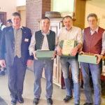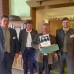 Fotos: Hötzelsperger – Ehrung für die ausgeschiedenen MR-Ortsobmänner mit mehr als 30 Jahren ehrenamtlicher Dienstzeit – von links: Stv. Vorsitzender Braun – Vorsitzender Blinninger – Jakob Kreckl aus Großholzhausen – Anton Maier aus Prutting – Georg Moosegger aus Großholzhausen und Gf Hötzelsperger