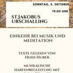 Am Sonntag, 5. Oktober wird wieder in die Kirche St. Jakobus nach Prien-Urschalling eingeladen. Die Veranstaltung “Einkehr bei Musik und Meditation” beginnt um 19 Uhr.