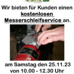 Einen kostenlosen Messerschleifer-Service bietet der Anderlbauer von Frasdorf am Samstag, 25. November in der Zeit von 10 Uhr bis 12.30 Uhr an.