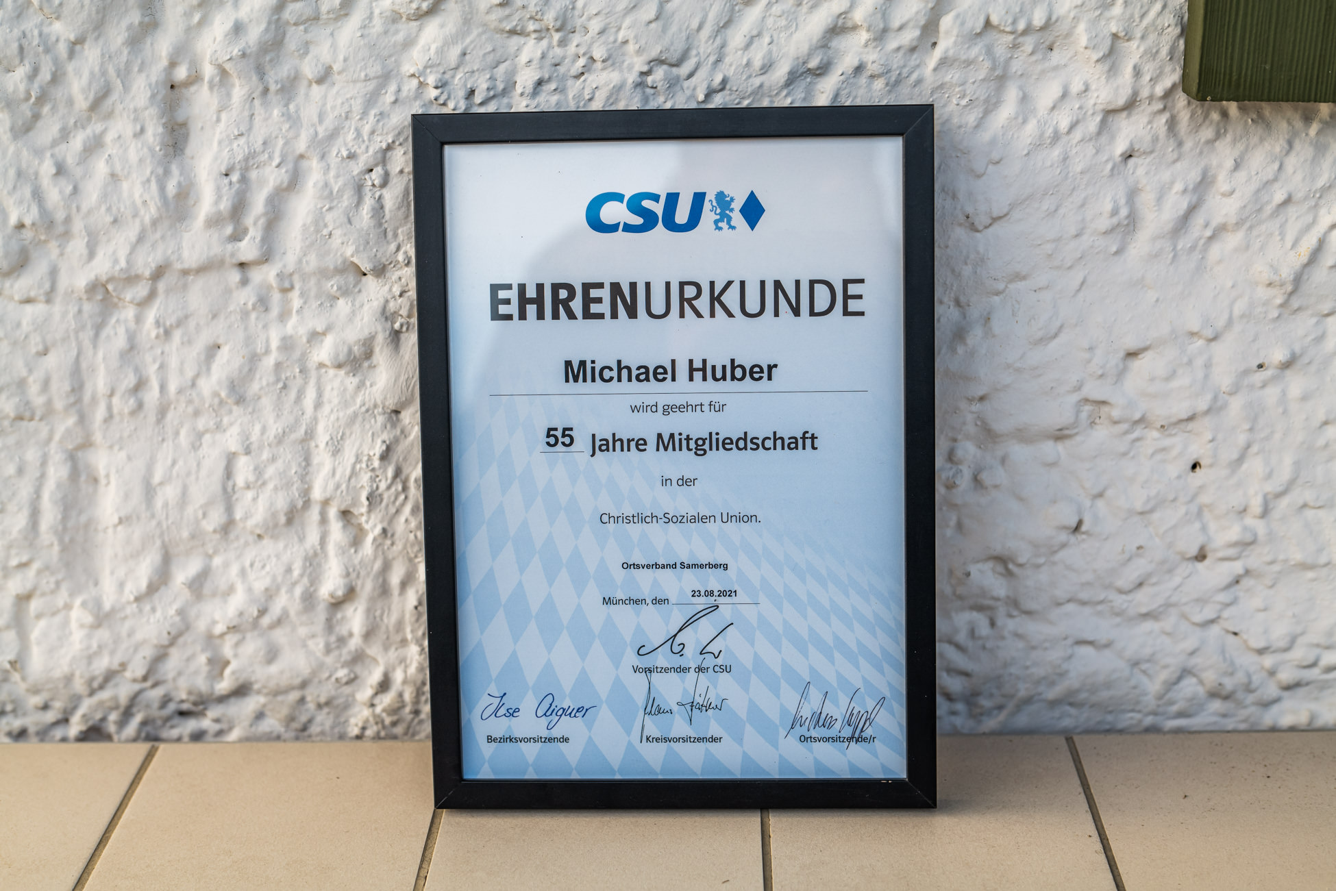 Michael Huber aus Obereck feierte seinen 90. Geburtstag: Ehrenurkunde des CSU