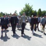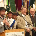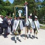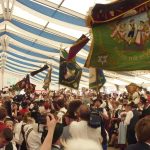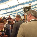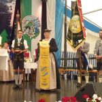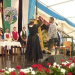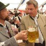 Zum 100-jährigen Jubiläum „Enzian“ Bruck wurde ein Fahnenband von Uschi Bösl geweiht und von der Fahnenmutter an die Vereins-Fahne gehängt. Auch Ministerpräsident Dr. Markus Söder überreichte an die Brucker Trachtler ein Fahnenband der Bayerischen Staatsregierung, „als Dank für die Ausrichtung dieses großartigen Festes“, so Herr Söder. Eine besondere Ehre für einen besonderen Verein. Am Festplatz reihten sich Ministerpräsident Dr. Markus Söder und der Finanz- und Heimatminister Albert Füracker in den Festzug ein. Am Marktplatz von Bruck verfolgten die Vorstandschaften der beiden Trachtenverbände und die politischen Ehrengäste den großen Festzug auf der Tribüne. Die Abordnung ging als krönender Höhepunkt hinter den Vereinen zum Festplatz. Durch ein Spalier von über hundert Fahnen und Standarten zog der Ministerpräsident unter den Klängen des Bayerischen Defiliermarsches ins Festzelt ein.