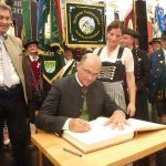 Die Fahnenabordnungen dicht an dicht bildeten einen herrlichen Rahmen, als sich der Ministerpräsident und der Heimatminister in das Goldene Buch von Bruck eintrugen. Der Ruck von Bruck – ein großartiges Fest für alle, die dabei waren.