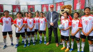 Besuch eines Mädchen-Fußballspiels und Begegnung mit dem Leiter und Parteisekretär der Sportbehörde der Provinz Sichuan im Adidas Fußball-Park, Herrn LUO Dongling; mit Benjamin Hoeneß, Direktor Corporate Partnerships, FC Bayern München AG
