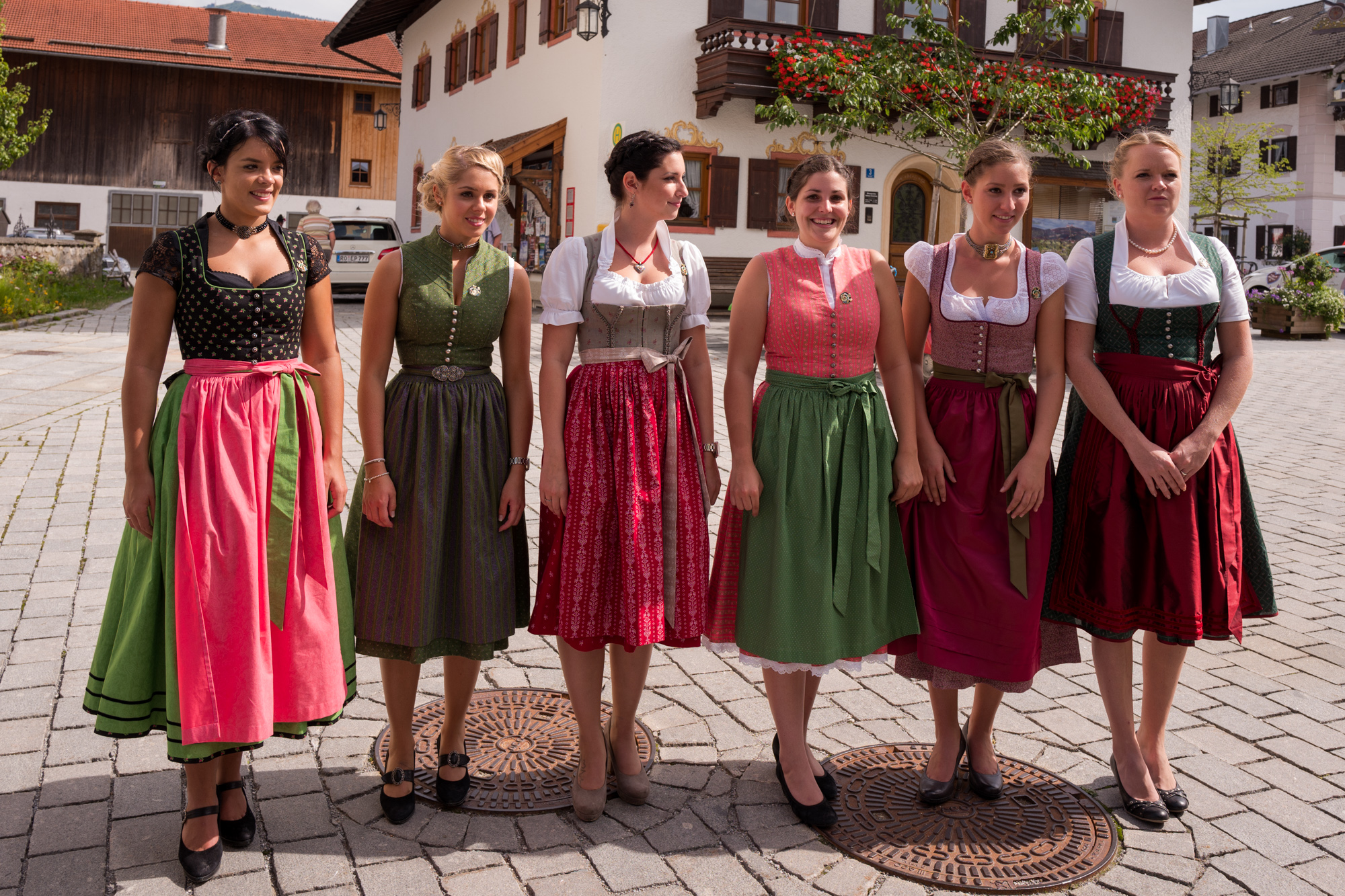 Die sechs Finalisten zur Miss Herbstfest auf dem Samerberger Dorfplatz