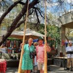 Shareen hat den Village Sunday Market nun nicht zufällig als Treffpunkt ausgewählt. Der Markt bietet nämlich neben Verkaufsständen kleinerer Unternehmer u. a. auch ein Unterhaltungsprogramm, wo sich Künstler und Musiker präsentieren können. So hat sie auch für unser Alphorn-Duo einen Auftritt arrangiert. Es war das letzte Konzert unserer zweiwöchigen Alphorntournee durch Namibia, wo wir unseren Klassiker, den Song „Elefantös“ wieder zum Besten gegeben haben.