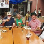 Etwas verspätet eilten wir nach dem eindrucksvollen Kirchengang mit unseren Alphörnern zum Village Sunday Market, wo wir mit Mitgliedern des Rotary Clubs Windhoek verabredet waren. Der Kontakt kam über die Deutsch-Namibische Gesellschaft zustande. Rotary ist eine internationale Wohltätigkeitsorganisation mit Hauptsitz in den USA, unter deren Dach die Rotary Clubs der Länder zusammengeschlossen sind. Am Imbisstand „Roof of Africa beer stall“ begrüßten uns die Rotariers von Windhoek mit ihrer Präsidentin Präsident Shareen Trude. In einem Gedankenaustausch verwies Shareen auf die Werte der Rotary Clubs. Service above Self, den Dienst über das Ich stellen – von diesem rotarischen Motto lassen wir uns leiten, so die Clubpräsidentin.