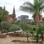 Am Tag vor unserer Abreise lud uns dann Shareen Trude noch zu ihrem „Old Breweries Craft Market“ ein, den sie managed. Es ist ein Markt in den historischen Gebäuden der „Alten Brauerei“ mit authentischen namibischen Souvenirs und Kunsthandwerk, darin ein namibische Kunsthandwerkszentrum, wo man lokalen Kunsthandwerkern bei der Arbeit zusehen kann. Bei einer Tasse Kaffee im Café des Marktes sprach Shareen von der geplanten Verlegung des Marktes in die „Alte Feste“ von Windhoek. Grund ist eine Nutzungsänderung der alten Brauereigebäude. Dies wäre sicherlich der optimale Standort für den Kunsthandwerker-Markt, denn die Alte Feste, ehemals von der deutschen Schutztruppe errichtet, direkt neben der Christus Kirche und dem Unabhängigkeitsmuseum, ist ein Muss für jeden Touristen. Eine Sightseeing-Tour durch Windhoek rundete den letzten Tag ab. Man merkt dort die deutsche Vergangenheit nicht nur daran, dass viele Bewohner der deutschen Sprache mächtig sind, sondern auch an der Architektur. So könnte z. Bsp. die Christuskirche mit ihrer Bauart auch irgendwo in Brandenburg stehen. Die deutsche Kolonialarchitektur ist in den größeren Städten Namibias allgegenwärtig.
