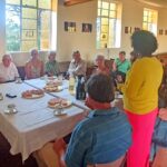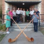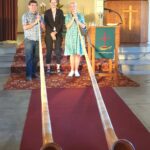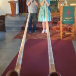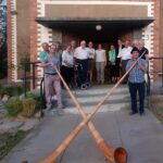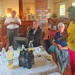 Der Kontakt kam über den Namibia-Unterstützungsverein von Margret und Joachim Knoche zustande. Vanessa Caspers vom Gemeindekirchenrat der Kreuzkirche hat uns daraufhin eingeladen, einen Gottesdienst mit unseren, für Namibia außergewöhnlichen Instrumenten musikalisch zu begleiten. Empfangen hat uns der Vorsitzende des Kirchenrates, Bernd Steinborn. Anneliese Hofmann, seit 2022 Pastorin der Gemeinden Otjiwarongo, Omaruru und Outjo-Kamanjab, hieß uns herzlich willkommen. Ein Gottesdienst in Namibia mit alpinen Klängen sei für die Gemeinde schon was Besonderes. Zugleich war es für einem Gemeindemitglied, Frau Schuhmann, zugleich auch ein Geburtstagsständchen. Nach dem Kaffeekränzchen, wo interessanterweise alle deutsch sprachen, dann noch ein Gruppenbild vor der Kirche. Es war eine angenehme Begegnung in Omaruru, im Herzen Namibias, wo Kunst und Kultur viel bedeuten.