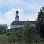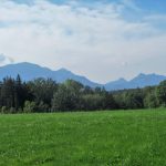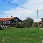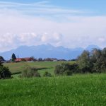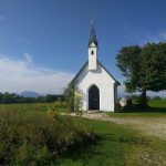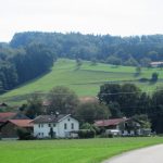 Von  Oberachthal über Irnkam nach Thalkirchen haben wir dann wieder gute Straßen, es begegnet uns aber kein einziges Auto. Auch auf der Straße nach Eichen ist kaum Verkehr. Kurz vor dem Aussichtsturm biegen wir rechts in einen Feldweg ein und folgen der Markierung Chiemgauthermen.