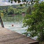Wir radeln weiter auf der Tüttenseestraße, die direkt am Rathaus vorbeigeht und kommen nach 2 km zu einem Parkplatz und wenige Meter weiter zum Seebad mit gleich danebenliegender Gastwirtschaft mit Terrasse. Bevor wir dort einkehren, fahren wir auf dem breiten Weg, der nah am Ufer entlang rund um den See führt, bis zu einem Badeplatz. Die Uferzone ist ein artenreiches Landschaftsschutzgebiet und hat teilweise Niedermoor-Charakter.