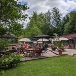 Wir schwimmen ein paar Runden, das Wasser ist sauber, warm und fühlt sich samtig an – ein Hochgenuss. Dann setzen wir uns auf die großflächige Terrasse, wo man direkt am Wasser sitzend ganz gut Essen, die Seele baumeln lassen und den Badetrieb beobachten kann. Hier haben auch die Kleinen ihren Spass, es gibt auch einen Bademeister, aber es kostet Eintritt.