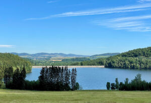 Ab Bayerisch Eisenstein werden Fahrgemeinschaften gebildet, um zum gebührenpflichtigen Parkplatz Hamry zu kommen. Dann geht es mit den Rädern bis zum Stausee Nýrsko. Steil bergauf geht’s weiter über den Bahnhof Zelená Lhota in Richtung Prenet. Abzweigend wird das Naturschutzgebiet Městišťské rokle gequert, ehe die Tour zum Sattel Suché Studánky führt. Abwärts geht es anschließend in den einsamen Talgrund zum Ortseingang von Nýrsko. Auf dem Rückweg wird noch ein Abstecher zu Fuß zur Ruine Pajrek (Bayereck) eingelegt. Entlang der nassen Wiesen der ehemaligen Helmhöfe fährt die Gruppe durch das Naturschutzgebiet Königswald und macht nochmal einen Abstecher zu Fuß, diesmal zum Naturschutzgebiet Weißer Fall. Danach geht’s hinab nach Hamry.