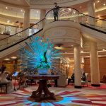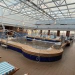 Weiter gibt es zwei Theatersäle mit Rängen für 1 000 Plätze, über die sich eine mittelgroße Stadt freuen würde, eine große Bücherei und Spielhallen vom einarmigen Banditen bis zur Spielbank mit Roullet-Tischen. Dazwischen immer wieder Restaurants und Bars mit Livemusik, Klassik und viele andere Musikrichtungen – (nur leider keine bayerische Blasmusik ))-;). Auch ein edler Schwarz-Weis-Ball wird angeboten. Im Heck befinden sich auf zwei Etagen Pools und Hot Potts im Freien und wenn es schlecht Wetter ist, gibt es im 12. Stock auch einen Innenpool mit Glasdach. Alles habe ich sowieso noch nicht gesehen, weil das Schiff so groß wie eine übereinander gebaute Kleinstadt ist, mich dafür aber schon des öfters verlaufen.