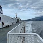 Die einzig milde Gegend Kanadas im Winter ist die Westküste ab der amerikanischen Grenze zwischen Meer und den hohen Bergen mit der Stadt Vancouver. Die sind aber nördlich von Vancouver so unüberwindlich und teilweise von langen Fjorden durchzogen, dass für die 30 000 Einwohner eine Straße oder ein Tunnel zu bauen, unrealistisch teuer wäre. Und so lebt man dort wie auf einer Insel, die nur mit einer großen Fähre erreichbar ist, auf der 180 Autos Platz haben und die den ganzen Tag in jeweils 40 Minuten Überfahrtszeit hin und her fährt. Wenn Du jetzt denkst, dass es dort sehr einsam ist – ich stand bereits jetzt schon ein paarmal in einem kleinen Stau. Meine Schwester, die dort seit 25 Jahren lebt, sagt, dass es im Sommer viel schlimmer ist und, dass dann sogar zwei Fähren eingesetzt werden, weil viele reiche Leute nur im Sommer ihre Zweithäuser bewohnen.