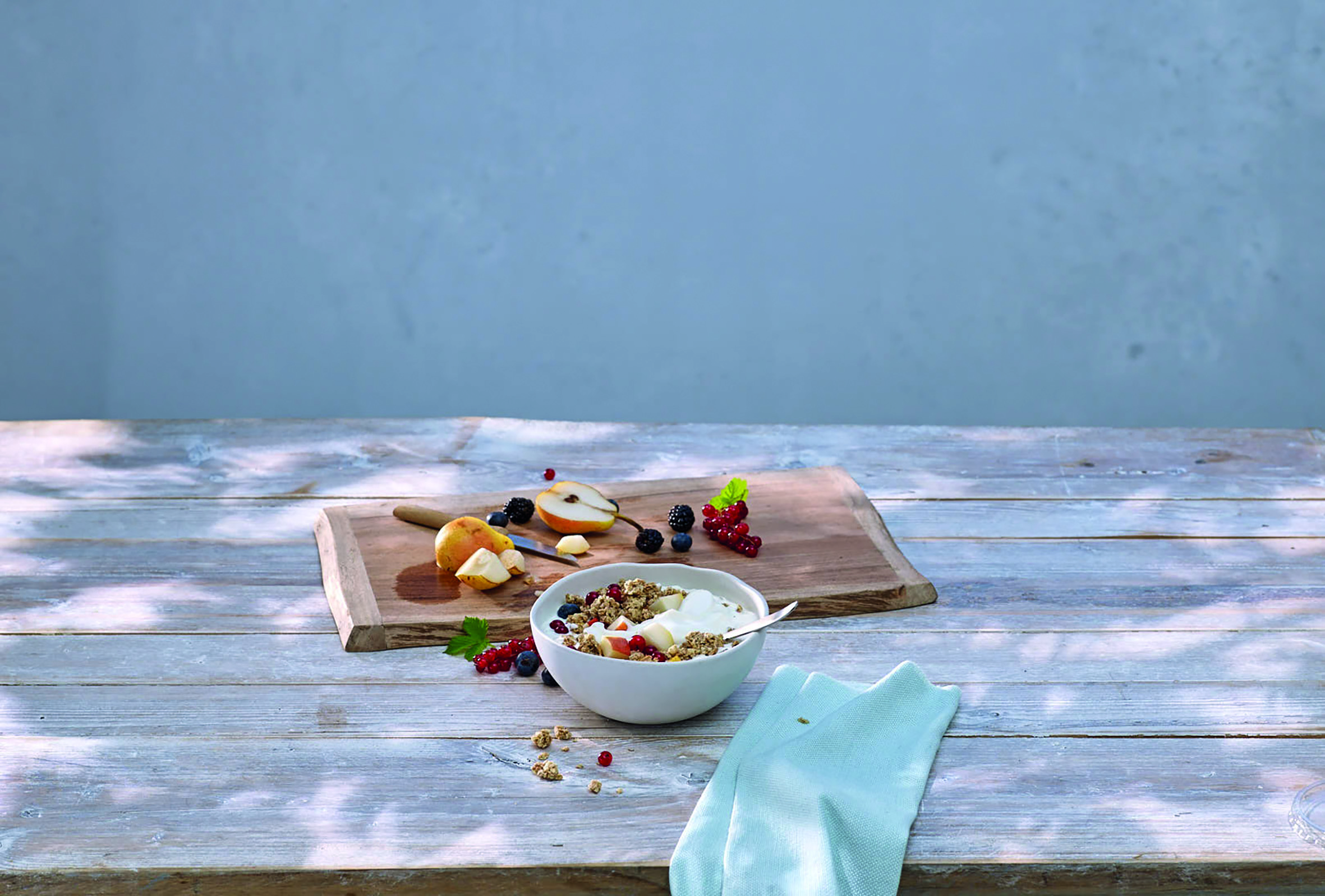 Fit-Milch und Fit-Joghurt von der Molkerei Berchtesgadener Land schmecken im selbst-gemachten Frühstück oder im leckeren Smoothie mit Früchten der Saison.