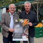 – Auf Werbetour für die Bauernmarktmeile am 25. September: BBV-Generalsekretär Georg Wimmer und Münchens Oberbürgermeister Dieter Reiter hier auf dem Bauernmarkt auf der Schwanthalerhöh in München