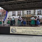 Zum Glück hatte sich die Hochwasserlage so weit entspannt, dass das Trachtenfest am letzten Freitag auf dem Markplatz in der historischen Altstadt von Gunter Dlabal, dem Vizepräsidenten des Deutschen Trachtenverbandes, zusammen mit dem Oberbürgermeister der Stadt Wangen, Michael Lang, eröffnet werden konnte. Sie begrüßten die Vertreter von 127 Trachtengruppen aus ganz Deutschland auf das Herzlichste. An den darauffolgenden Tagen begeisterten die Trachtler mit ihren Auftritten auf zahlreichen Bühnen der Altstadt und des Gartenschaugeländes das Publikum. Daneben fand an allen Tagen im Ortskern auch ein Trachtenmarkt statt.
