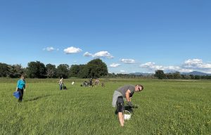 Nicht Goldgräberstimmung motiviert diese Menschen mit Zimmerer-Hammer und Eimer eine Wiese nahe Übersee genauer unter die Lupe zu nehmen, sondern das für Rinder und Pferde giftige Kreuzkraut. 25 Personen halfen beim Kreuzkrautstechen auf dem Naturland-Betrieb Gnadl der Molkerei Berchtesgadener Land.