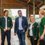 Geplant war das Projekt Zukunftsbauer mit sieben Schritten von der Projektinformation der Landwirt:innen bis zur überprüften Umsetzung. Bernhard Pointner, Geschäftsführer der Molkerei Berchtesgadener Land, und Senior Category Buyer Markus Meinke vom Discounter Penny freuten sich sehr, dass das 2021 gemeinsam entwickelte Energieeffizienz-Projekt auf so große Resonanz bei Verbraucher:innen und Landwirt:innen gestoßen ist. Durch den Spannenverzicht beim Verkauf der Berchtesgadener Land Markenprodukte in den Penny-Filialen in Süddeutschland sowie den national in den Pennyläden erhältlichen Zukunftsbauer-Naturjoghurts kamen innerhalb des ersten Halbjahres 155.000,- Euro in den Fördertopf, den die Molkerei verdoppelte. Zu der zum Start angebotenen Online-Informationsveranstaltung für die Landwirt:innen hatten sich im Herbst 2021 innerhalb weniger Tage 280 Genossenschaftsmitglieder angemeldet. In den folgenden Monaten waren Workshops besucht, Konzepte erarbeitet und die ersten 39 Förderanträge eingereicht, geprüft und die Fördergelder ausbezahlt worden. Auf dem Hof von Regina Mayer in Nirnharting überzeugten sich Pointner und Meinke nun persönlich von den umgesetzten Maßnahmen und übernahmen damit den letzten der sieben Schritte im Projekt. Dabei überbrachten sie die eigens für die teilnehmenden Betriebe entwickelte Förderplakette. Das Fazit von Bernhard Pointner, Geschäftsführer der Molkerei: „Klimaschutz geht nur zusammen. Als Genossenschaft freut es uns besonders ein Förderprogramm umzusetzen, bei dem alle zusammen – Handel, Unternehmen, Landwirtschaft und Verbraucher:innen – an einem Strang ziehen.“ Und Markus Meinke ist überzeugt: „Gerade in der aktuell unsicheren Zeit ist es umso wichtiger auf erneuerbare Energien zu setzen bzw. die Einsparung von Energie zu unterstützen. Auch die Energie-Unabhängigkeit ist für jeden einzelnen Bauern wichtiger denn je, um weiter steigende Betriebs- und damit auch Milcherzeugungskosten abzufangen. Mit unserem „Zukunftsbauer“ liegen wir hier absolut am Puls der Zeit“.