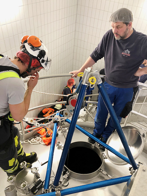Kein Brand, sondern die Rettung aus Höhen und Tiefen war die Aufgabe der Florianijünger bei der kürzlich durchgeführten Übung auf dem Gelände der Molkerei Berchtesgadener Land.